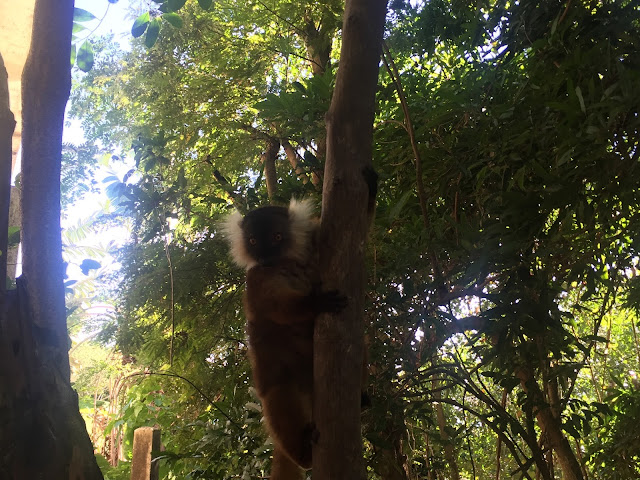 El hotel Nature Lodge, junto al Parque, resultó ciertamente espectacular (http://www.naturelodge-ambre.com/en/), con unas preciosas cabañas de madera con vistas a un valle y el mar a lo lejos (solo estábamos 40km al sur de DS). De aire colonial, nos metió todavía más en el viaje, cenamos de lujo (y tan barato!); al día siguiente nos esperaba otro pelotazo.