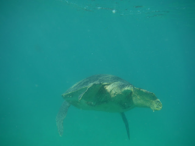 Un lugareño nos ofreció ver tortugas en la isla pequeña, pero no nos imaginábamos lo que estábamos a punto de ver, porque en una playa escondida a la que nos llevó cruzando el hotel "abandonado" no podíamos creer lo que vimos: muchos montones de arena, cerca ya de la zona vegetal, precedidos de enormes marcas en la arena de tortugas que habían ido alguna noche a desovar, y con unos carteles cutres con la fecha de la puesta donde, tras dos meses, salen las "baby turtles".